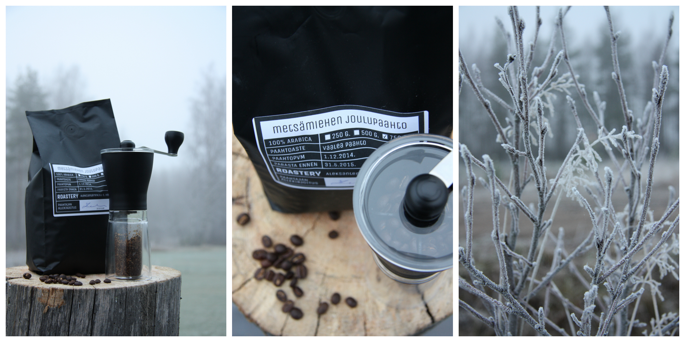 Metsämies juo joka ilta ison mukillisen kahvia, ja aika usein hän juo kupin myös aamuisin. Ruuasta on tullut meille yhteinen harrastus. Halusin löytää hänelle sen täydellisen kahvikupposen. Metsämies pitää enemmän vaaleammasta paahdota ja ehkä hieman karkeammasta pannujauhotuksesta. Minä itse voin vain ottaa maistiaisen, kun olen niin herkkä kofeiinille. Onneksi tuoksussa ei ole kofeiinia!