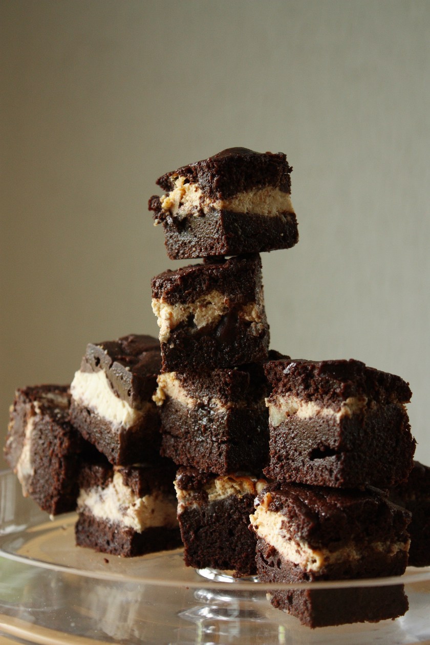 Sekoita toisessa pienemmässä kulhossa täytteen aineet yhteen. Kaada puolet taikinasta lasagnevuokaan ja sen päälle täyte. Kaada loput taikinasta täytteen päälle. Paista 160 C asteisessa uunissa noin 45 minuuttia tai kunnes hammastikulla koettaessa se tulee puhtaana pois. Anna jäähtyä täysin vuoassa ritilän päällä. Nosta sitten vasta folioreunoista pois vuoasta ja leikkaa pieneksi neliöiksi. Nämä browniet pakastuvat erittäin hyvin.