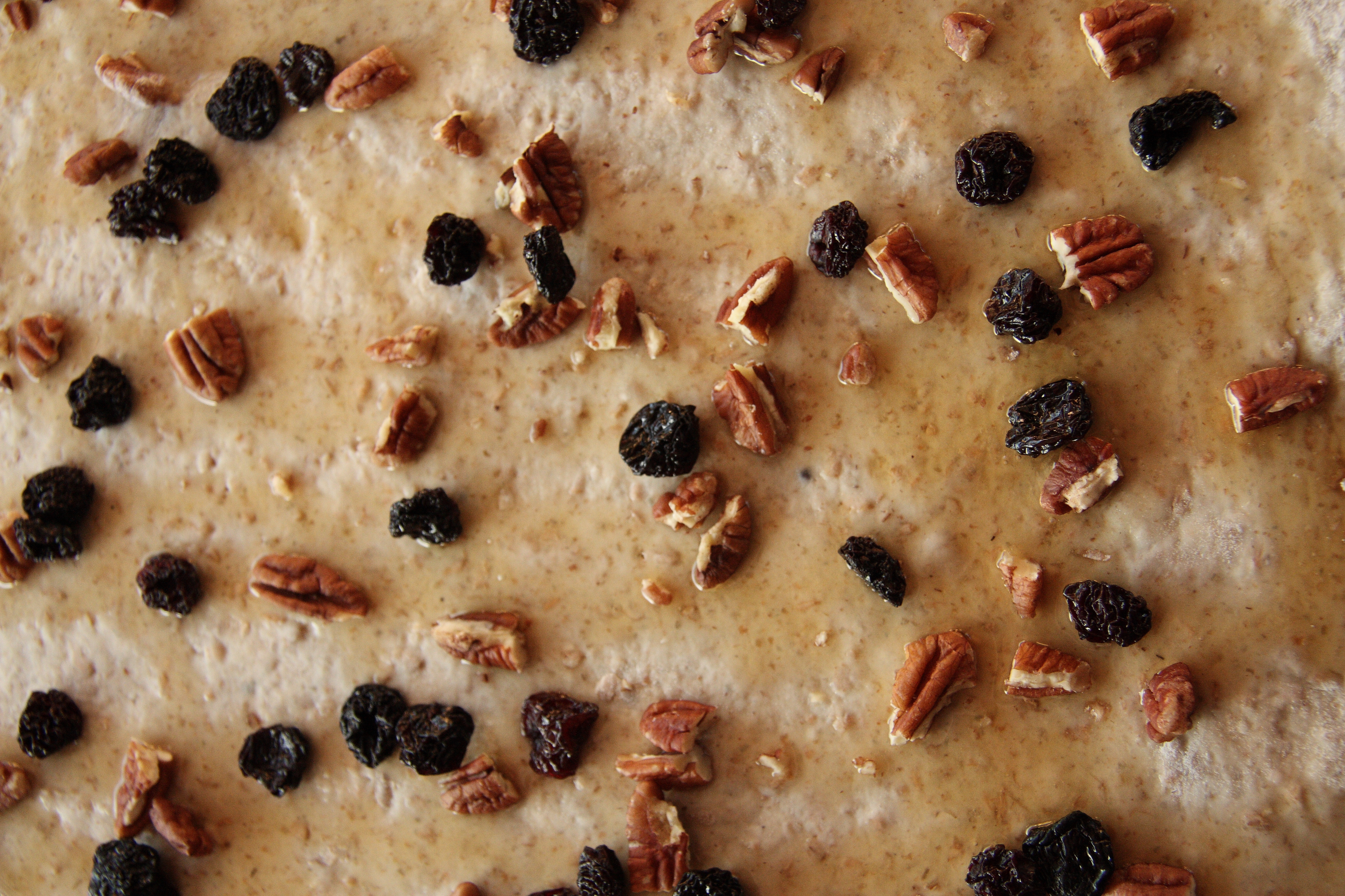 Täysjyväleipä hapankirsikoilla ja pekaanipähkinöillä
