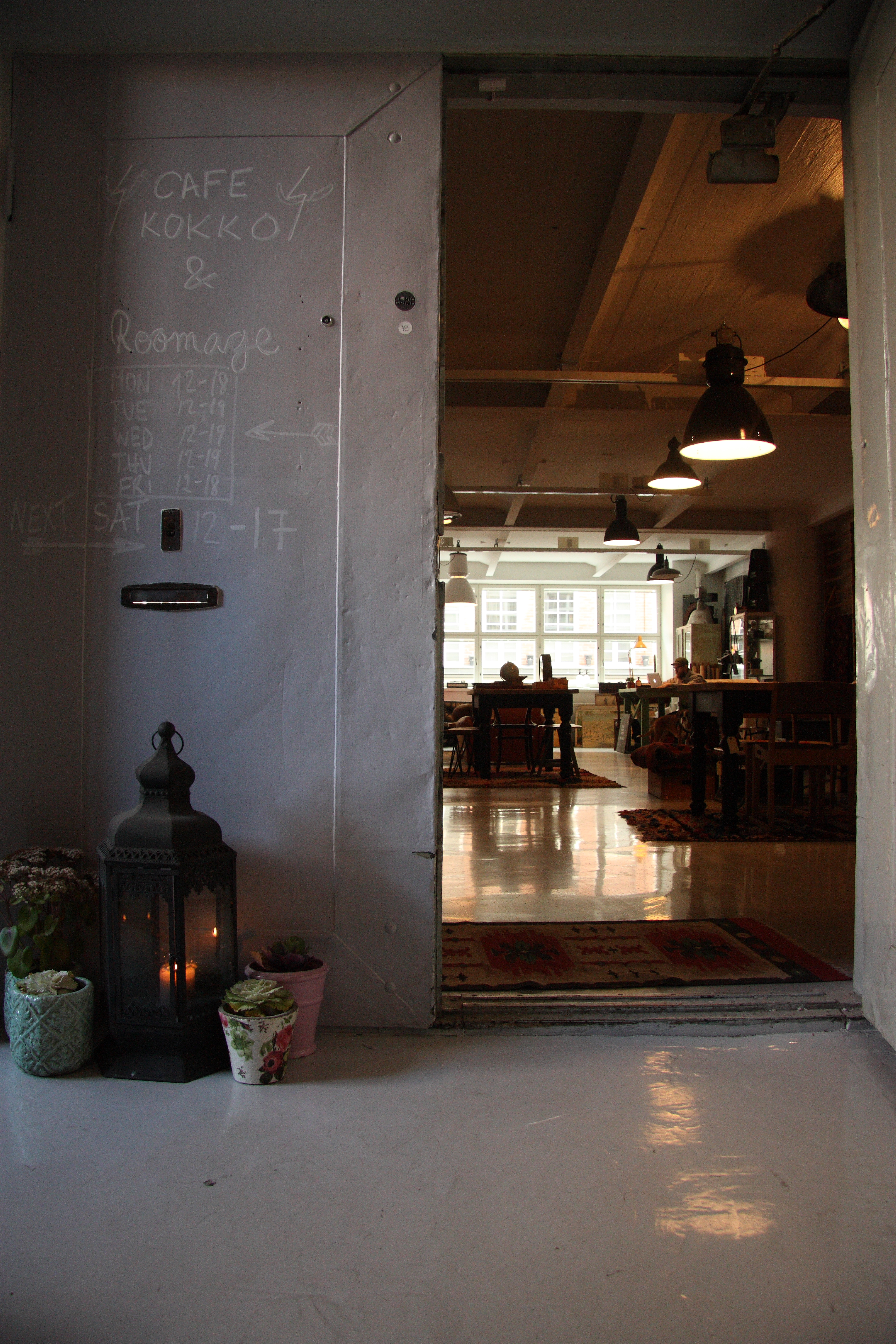 Olen tehnyt uuden tuttavuuden. Ja olen ihastunut. Tunnelma on rauhallinen ja erinomainen, toisella puolella salia on myytävänä vintage huonekaluja sulassa sovussa kahvittelijoitten seassa. Tiskillä on suussa sulavia gluteenittomia raakakakkuja ja muita herkkuja. Cafe Kokko on hieman piilossa, koska se on toisessa kerroksessa ja sinne täytyy mennä sisäpihan ja rappukäytävän kautta. Kun sinne kerran löytää tien, sinne on helppo palata. Kampin kauppakeskuksesta sinne oli vain muutaman minuutin kävelymatka. Todellisuudessa se on ihan lähellä keskustaa.