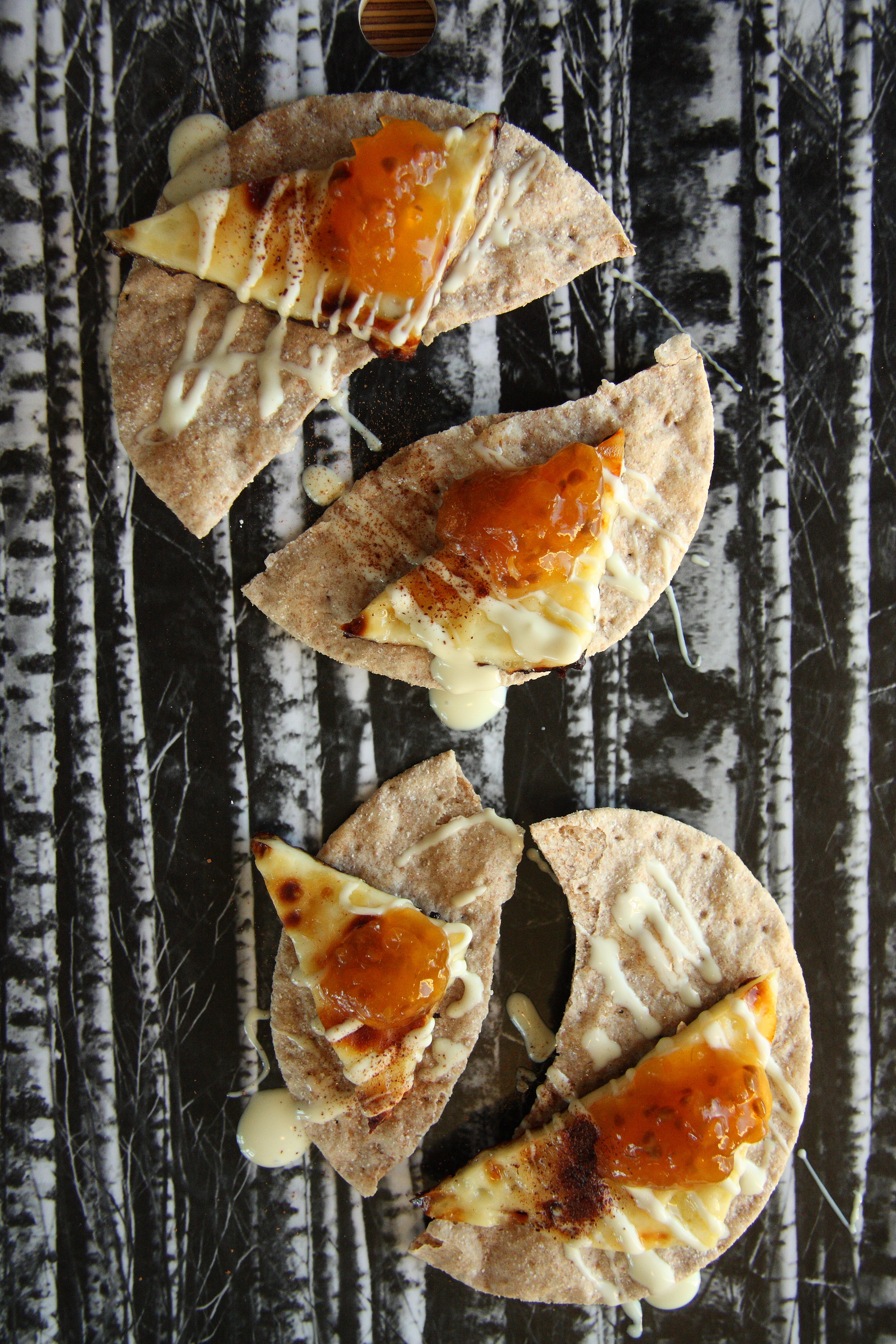 Paistettu leipäjuusto valkosuklaalla ja lakkahillolla
